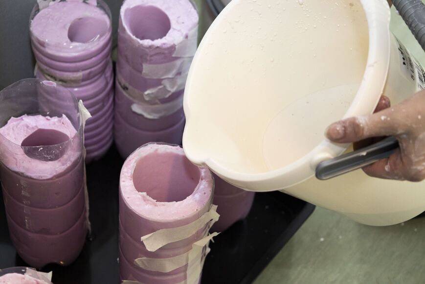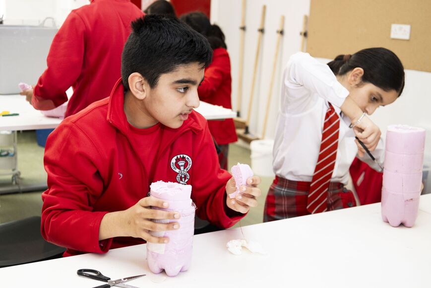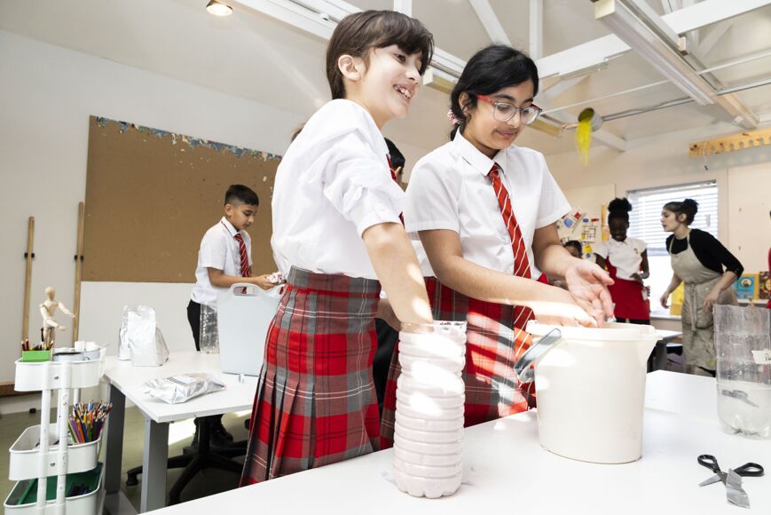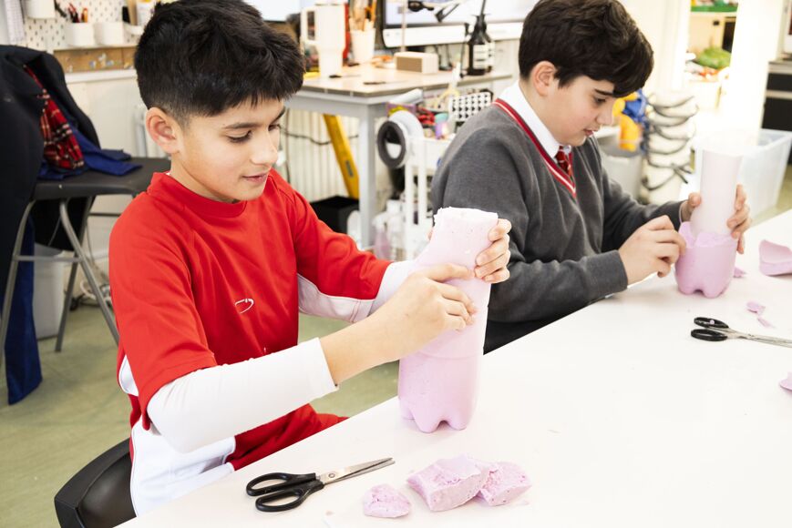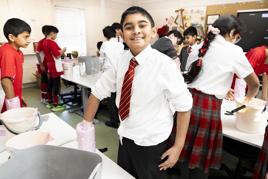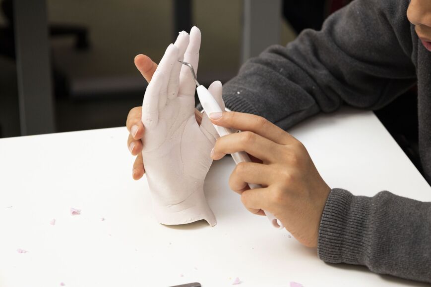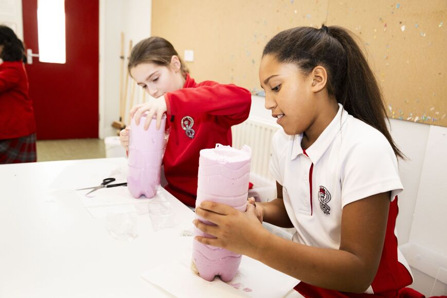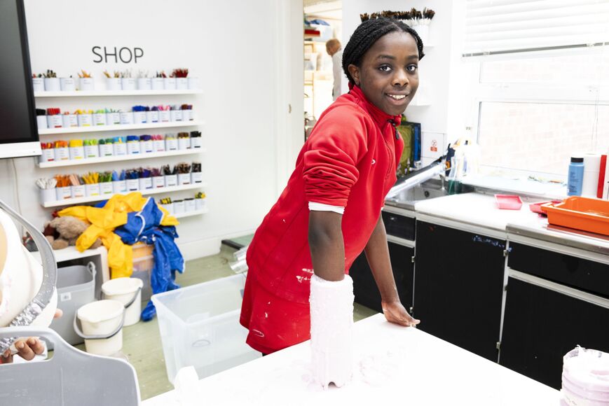 Using alginate, a fast-setting material often used by dentists to take impressions, the children created plaster casts of their hands. The children had under two minutes to mix and pour their alginate into their moulds before plunging their hands into the mixture, holding their hands in their chosen pose before the alginate set. Once casting plaster had been poured into the moulds and set, the children had the task of carefully tearing off the parts of their moulds to reveal their sculptures inside. Particular care had to be taken when removing the alginate from around the fingers as they can easily break.