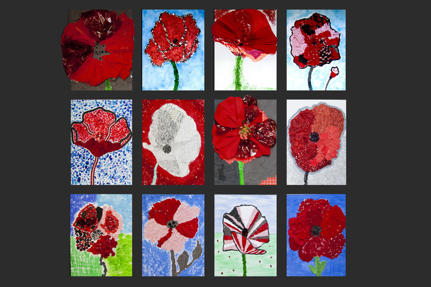 Woodford Green Preparatory School have created an art installation around Remembrance 2018, using the poppy as the central theme and our recycled old style uniform as the main medium. The subject of war is never easy to discuss. However, through the design and generation of meaningful art, an opportunity is presented to facilitate thought on the challenging themes of sacrifice, heroism, obedience and loss. Discussions motivated some pupils to produce independent writing for the British Legion’s Thank You campaign. Year 6 produced an evocative canvas around their study of the poem In Flanders Field.