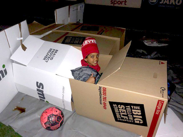 There were about 40 people taking part, it spat with rain and it got quite cold in the morning. I was really glad to go home and sleep in my comfortable bed. During the night we saw a fox wandering about the stadium and we made it leave. During the sleep out I made a nice cosy tunnel out of cardboard and had chocolate and three bottles of water