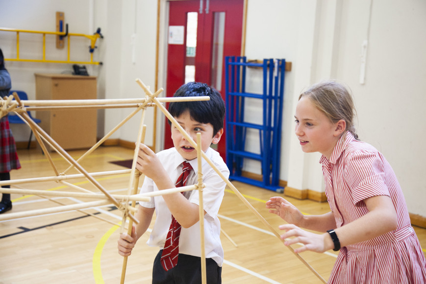Posted on: 14th Oct 2019During mental health week we were lucky to have a visitor from Architecture Workshops. We started off by taking small sticks and we learnt how to join them into triangles using elastic bands. We then added more sticks to create a triangular based pyramid. Then we got in to groups of 6 and we discussed what type of shelter we wanted to build. We thought about whether it needed to be off the ground, windproof and enough space for all of us to sleep. Then, we had great fun building the structures using wood and elastic bands, using triangle shapes for strength. It was really good fun! At the end we tested our structures - some withstood the wind (simulated by the teacher shaking our shelters!) and some fell down!