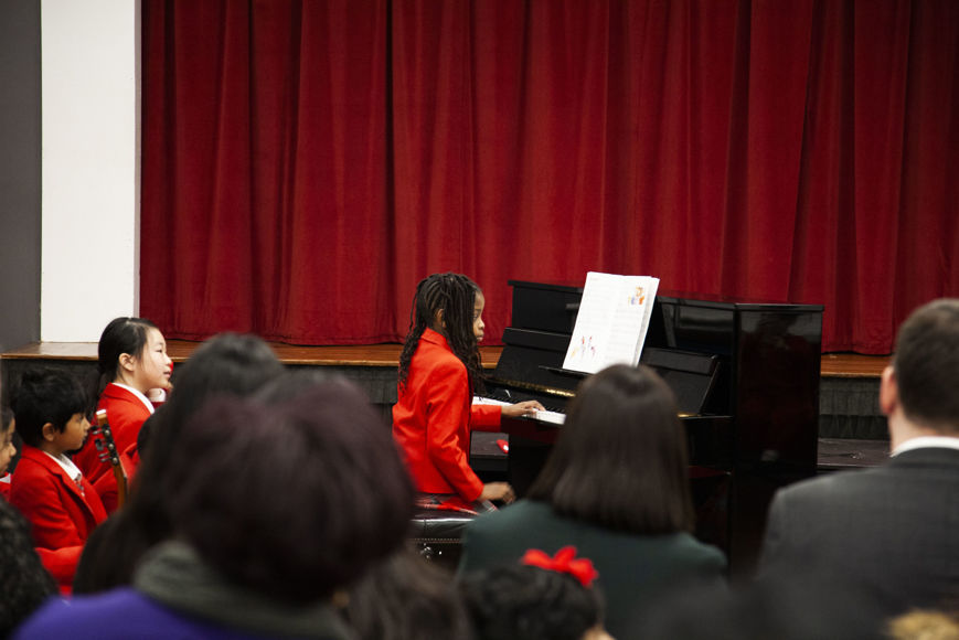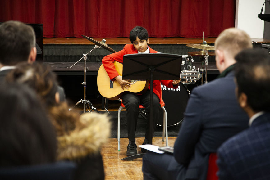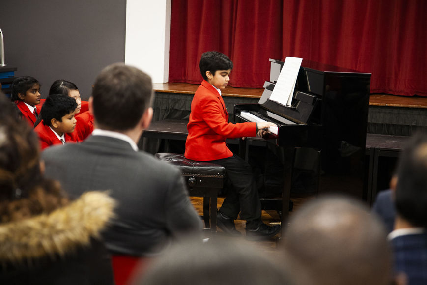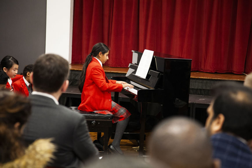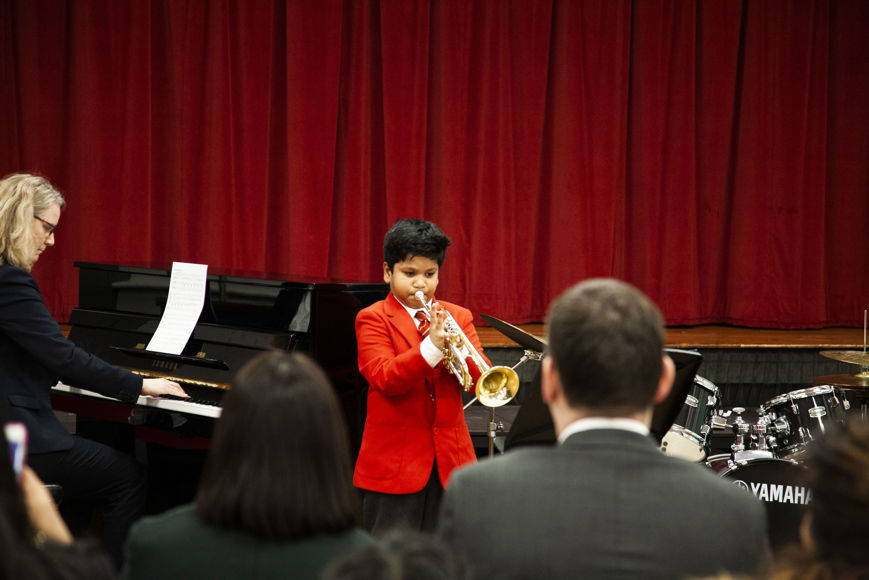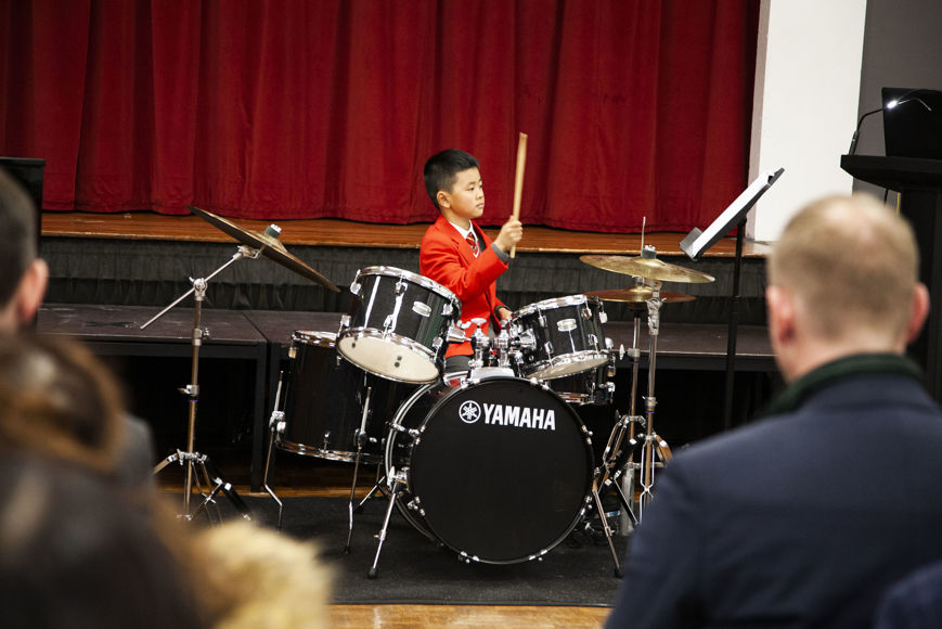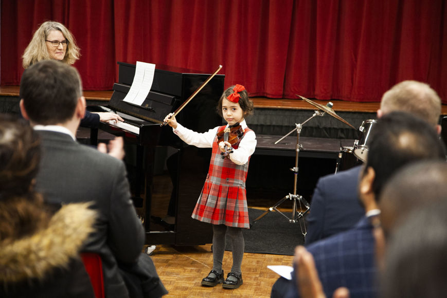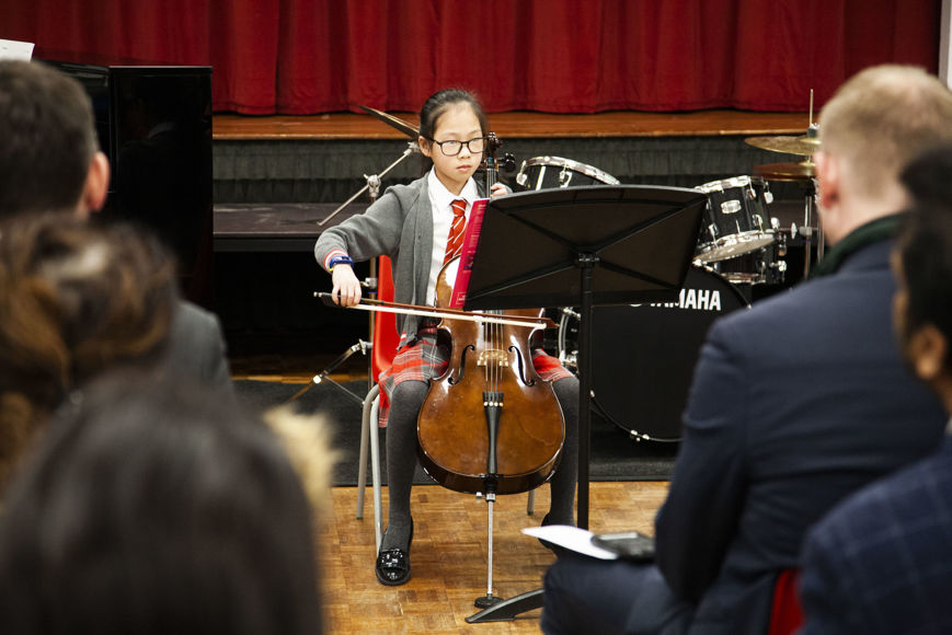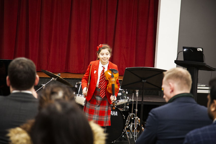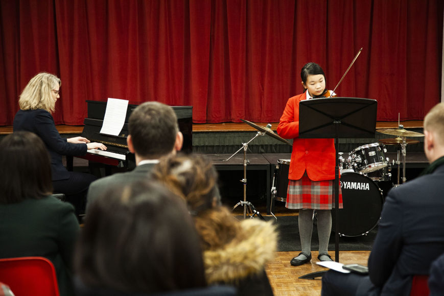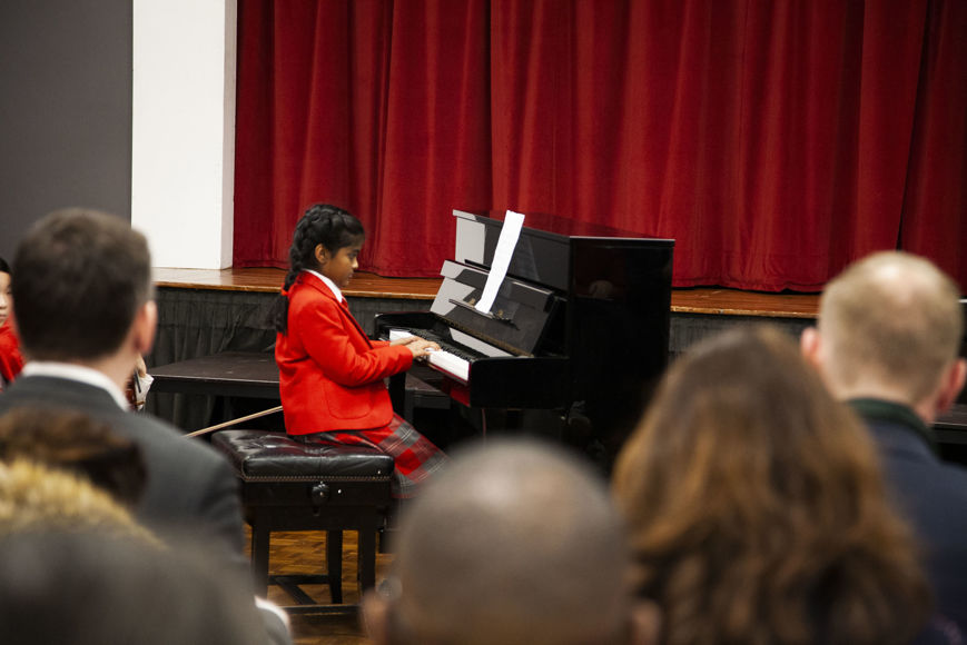 Posted on: 4th Feb 2020Brilliant performances from all who took part in the Autumn Teatime Concert, showcasing our budding talented musicians.  Usually children from Year 1 to Year 6 take part with performances being given on a variety of instruments including piano, drums, voice, violin, cello, guitar, flute and trumpet. The musicians were joined this time by a Foundation 2 pupil, who delighted the audience with an astounding performance on the violin.