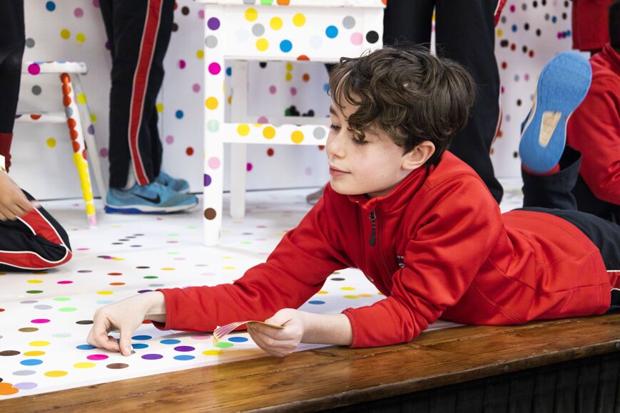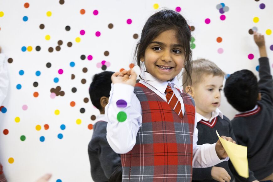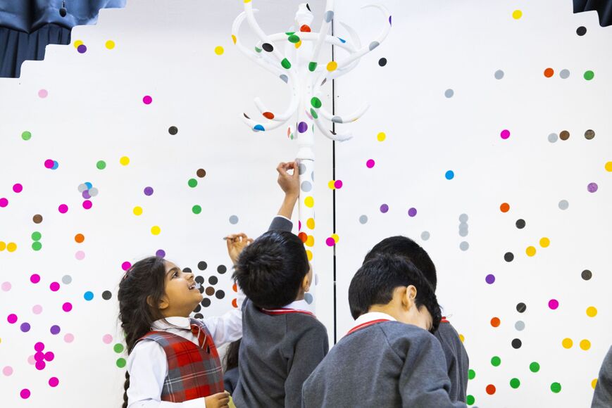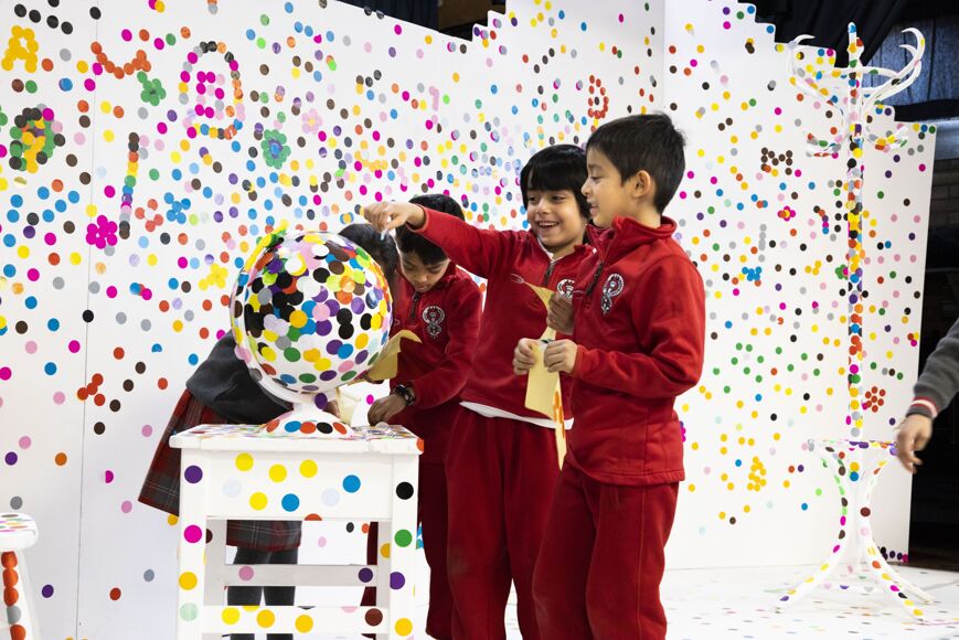 Posted on: 9th Feb 2023During Heritage Fortnight, pupils and staff were engaged in a whole school art project. Inspired by Yayoi Kasoma’s Obliteration Room, WGPS created an in-house 'Obliteration Corner'. Built on the stage, each class visited the installation and were invited to interact with the space, sticking dots, as they saw fit. It was interesting to see how different personalities approached adding their dots to the installation. The enthusiasm of the children was infectious and will be in our memories for a long time to come.