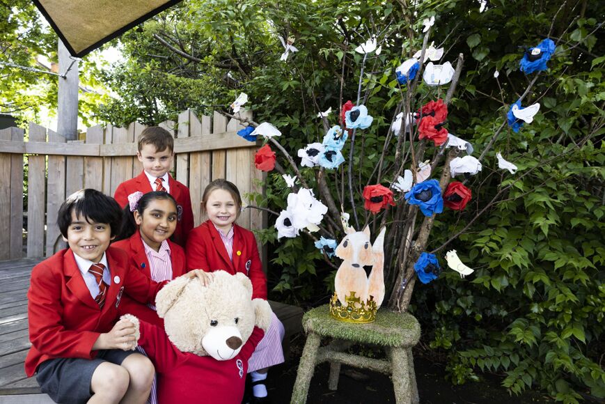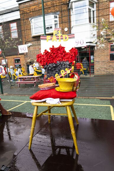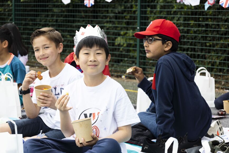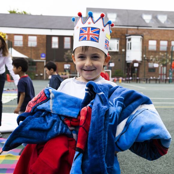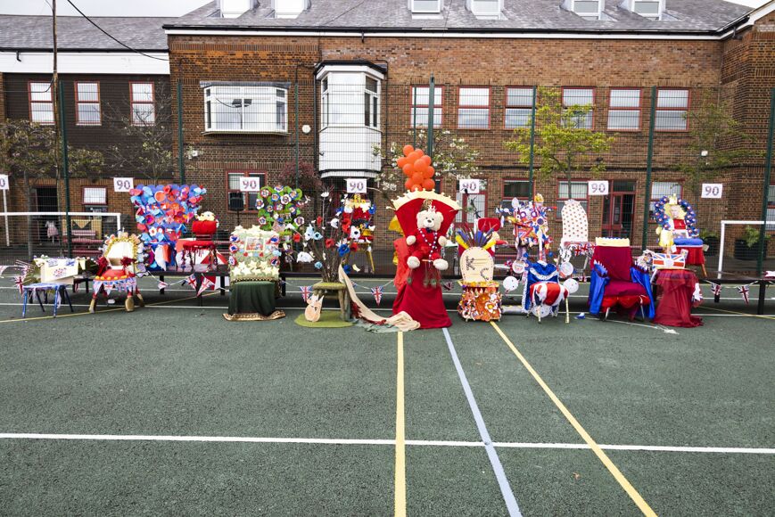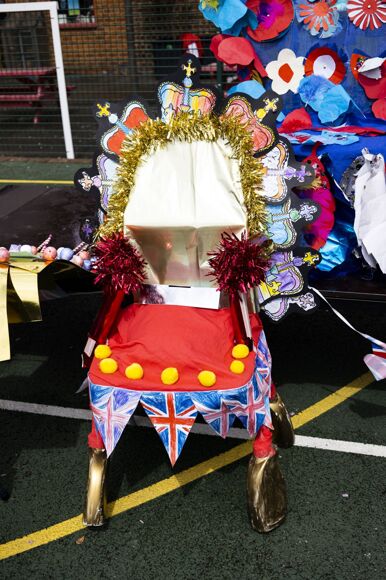 In keeping with King Charles’ ethos of recycling unused items to support the natural world, cupboards and garages were scoured to source old and unused chairs, for repurposing into thrones fit for a modern monarch. Everyone, from the Headmaster, administrative staff, school nurse to all classes, enjoyed researching the historical significance, roles, styles of thrones through the ages and society. Everyone avidly applied design and technology skills in anticipation of presenting their throne creations during our celebration picnic. The end result was a magnificent array of thrones, celebrating sustainability, the environment and community. And, despite the best attempts of the rain (a somewhat British tradition), everything proceeded as planned.