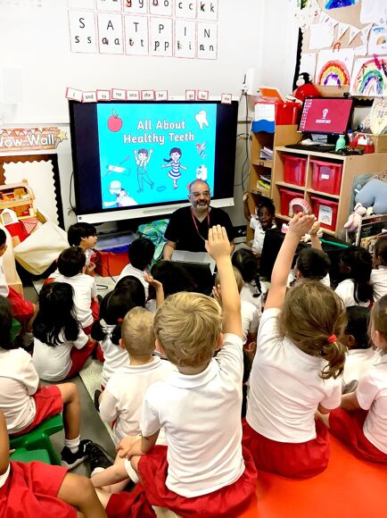 Posted on: 28th Jun 2023A huge thank you to Mr Hussain, who very kindly gave up his time to talk to the Foundation One children about his job as a dentist. The children learned that the number two is significant. You should brush your teeth twice a day; visit the dentist twice a year and you get two sets of teeth so we must look after them! Mr Hussain talked about the importance of a healthy diet, brushing in front of a mirror gives best results and have a treat once a week!