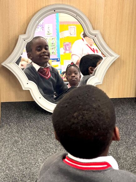 FS1 looked at their unique fingerprint patterns, FS2 looked at the different shapes of their hands and Year 1 created portraits and studied their reflections. Vese pointed out that the different colours are what makes a rainbow beautiful; we are all different so that is what makes our school so wonderful. Whoever you are, we are all beautifully made and we must recognise this.