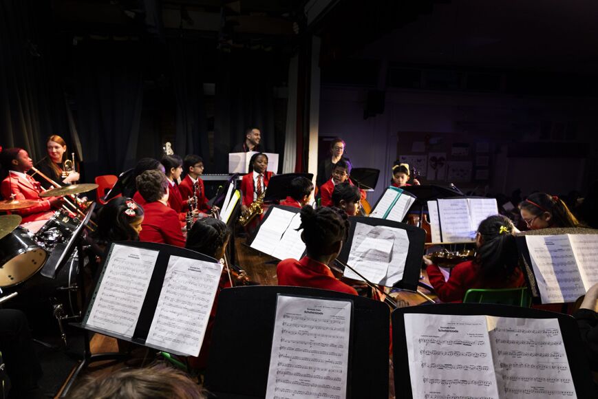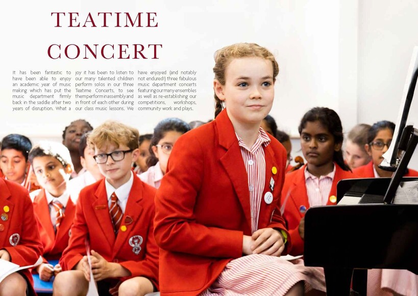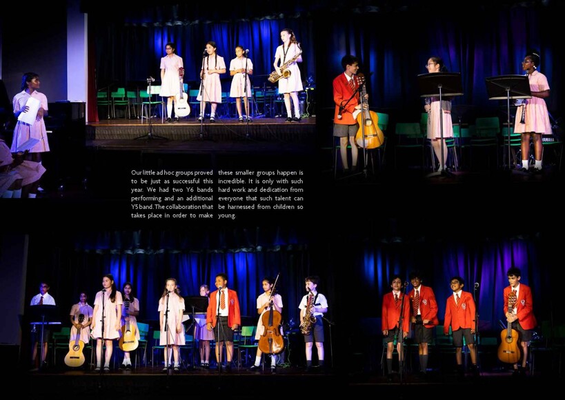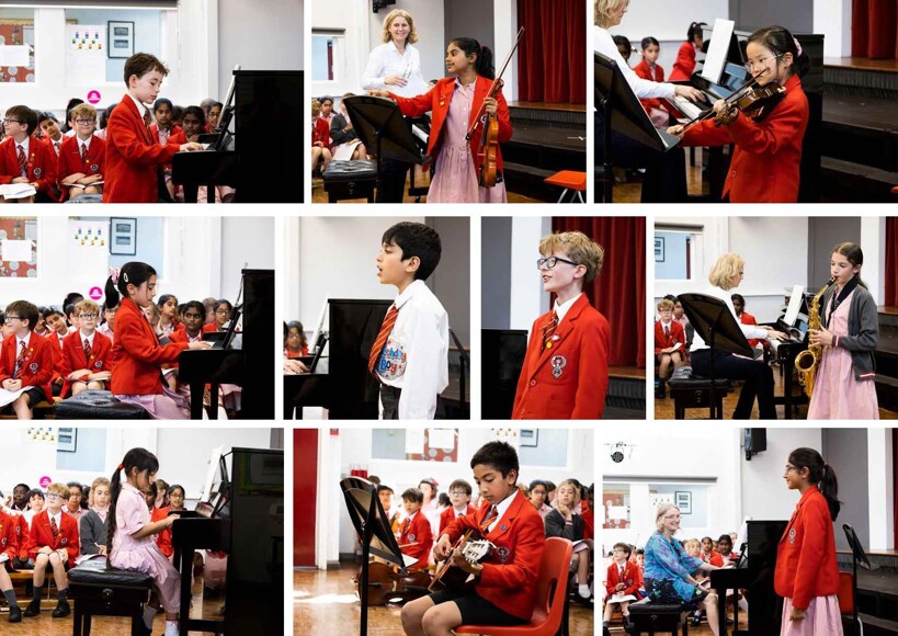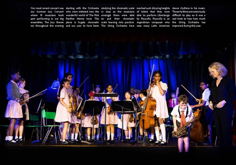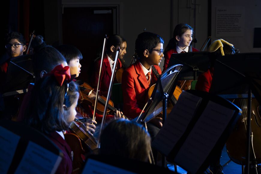 Performing is a key part of being a musician and we aim to provide a vibrant, supportive music department through the curriculum and through our numerous and varied extra-curricular ensembles. There are opportunities to take part in Choirs, Orchestra, Jazz Band, Brass group, String ensemble, Guitar ensemble, Saxophone group or just playing solos in assembly. All musicians are welcome to participate in our ensembles even if they learn outside school. Many children develop ad hoc groups by taking initiative and organising themselves. We have concerts both formal and informal, carol services, competitions and festivals, all of which are supported by a team of peripatetic music teachers offering tuition on a wide spectrum of orchestral instruments, piano and voice.